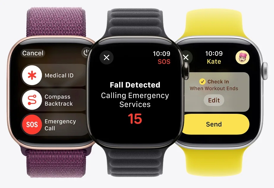 Η Ανίχνευση Πτώσης και η Ανίχνευση Σύγκρουσης μπορούν να σε συνδέσουν με τις υπηρεσίες έκτακτης ανάγκης σε περίπτωση άσχημης πτώσης ή σοβαρού τροχαίου ατυχήματος. Και το Επείγον SOS σου δίνει τη δυνατότητα να καλέσεις βοήθεια με το πάτημα ενός κουμπιού. Η λειτουργία Check In ειδοποιεί αυτόματα ένα αγαπημένο σου πρόσωπο όταν φτάσεις στον προορισμό σου.
