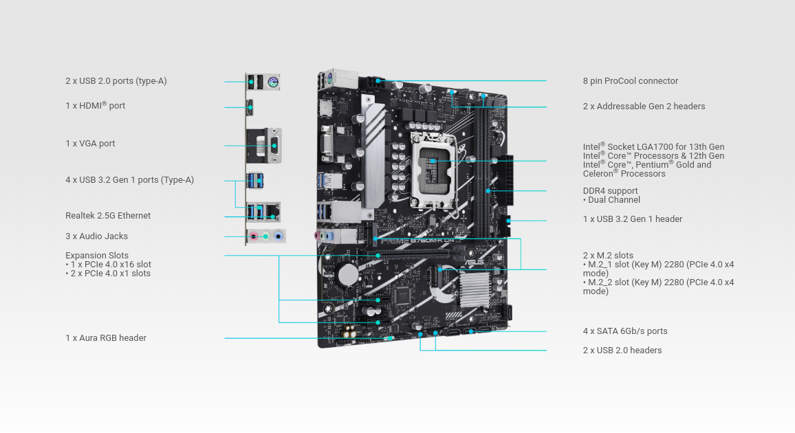 Asus PRIME B760M-K D4 Motherboard Micro ATX με Intel 1700 Socket 90MB1DS0-M0EAY0