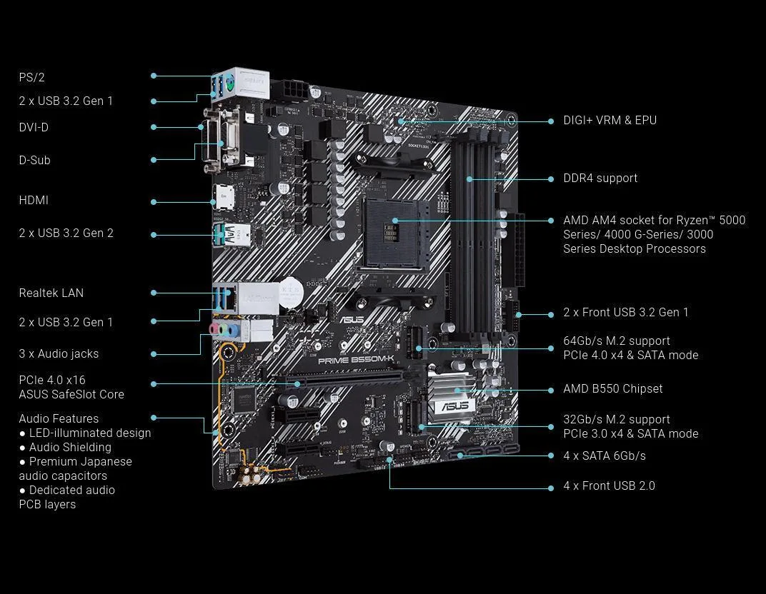 Asus Prime B550M-K Motherboard Micro ATX με AMD AM4 Socket 90MB14V0-M0EAY0