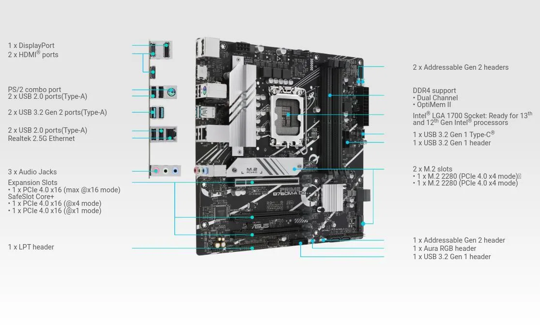 Asus Prime B760M-A-D4-CSM Motherboard Micro ATX με Intel 1700 Socket