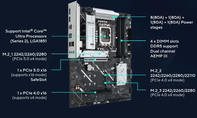 Asus Prime B860-Plus Motherboard ATX με Intel 1851 Socket 90MB1K50-M0EAY0