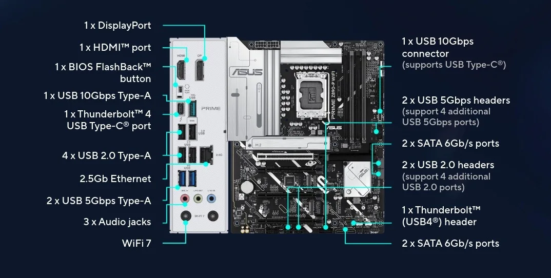 Asus Prime Z890-P WIFI rev. 1.0 Motherboard ATX με Intel 1851 Socket PLYASU1850010