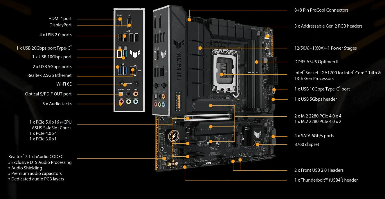Asus TUF B760M-PLUS GAMING WIFI II Motherboard Micro ATX με Intel 1700 Socket 90MB1HE0-M0EAY0