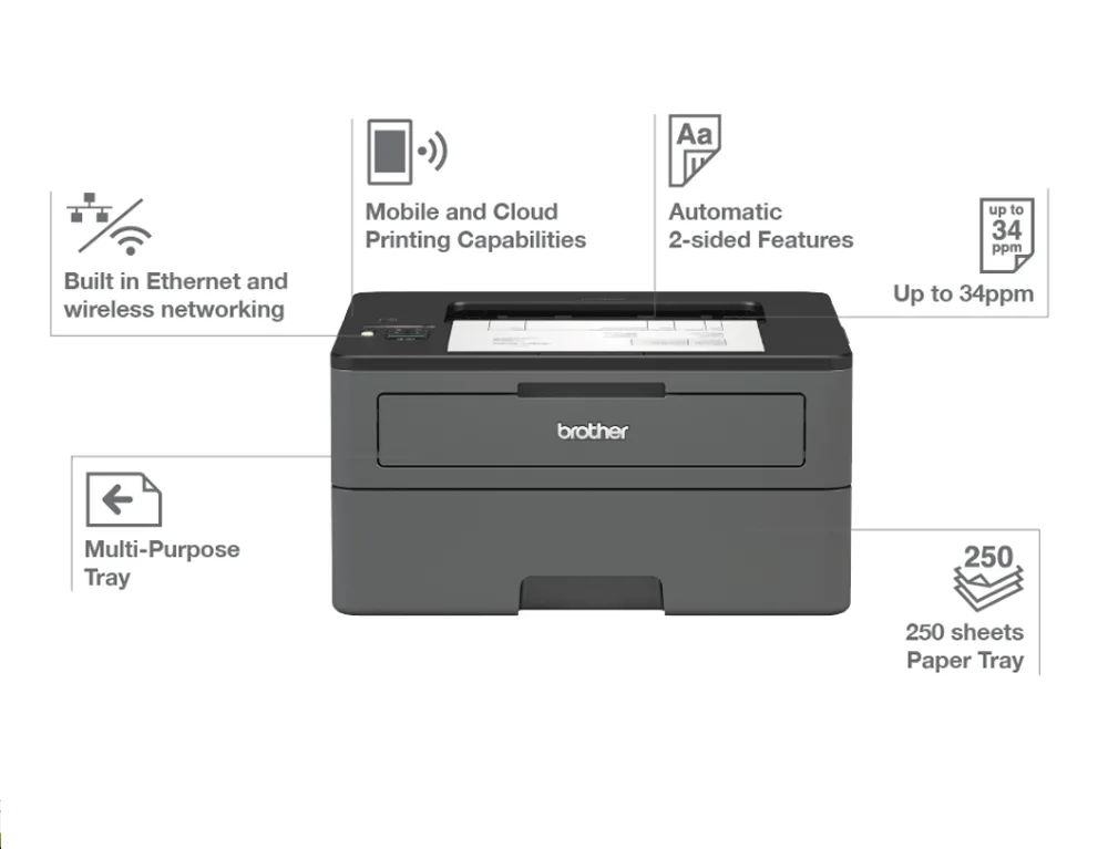 Brother Ασπρόμαυρος Εκτυπωτής Laser με WiFi και Mobile Print HL-L2445DW