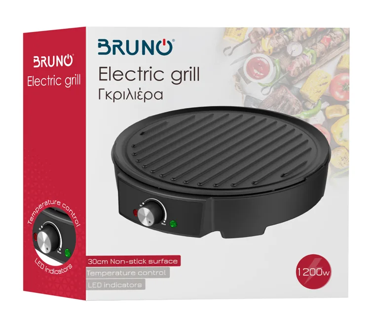 Bruno Επιτραπέζια Ηλεκτρική Ψησταριά Αλουμινίου Αυλακωτής Πλάκας 1200W με Ρυθμιζόμενο Θερμοστάστη 30x30εκ.