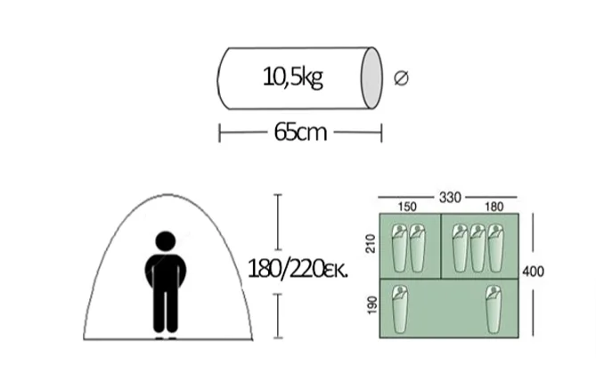 Campus Καλοκαιρινή Σκηνή Camping Τούνελ Πράσινη με Διπλό Πανί για 7 Άτομα 400x330x220εκ.