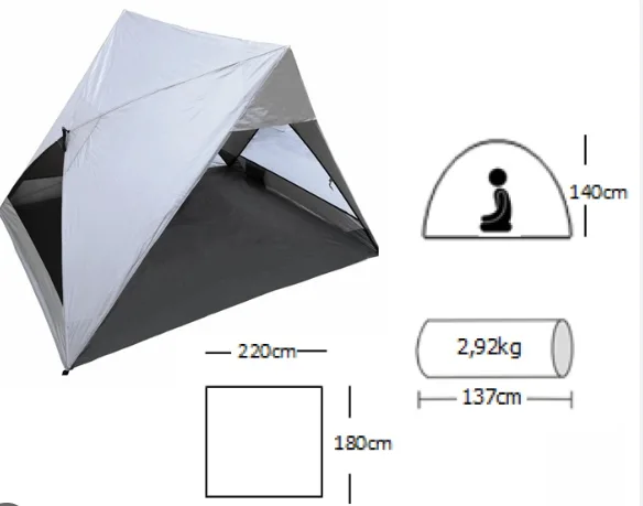 Campus Monterey Σκηνή Παραλίας με Αυτόματο Μηχανισμό Γκρι 180x140x220εκ.