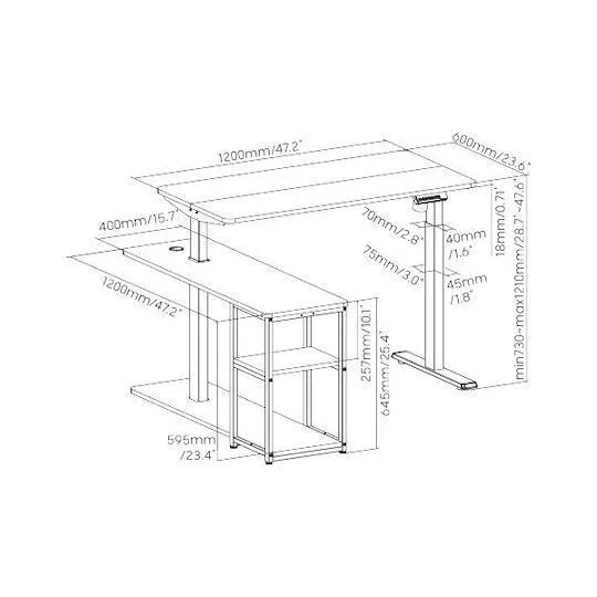 Γωνιακό Ηλεκτρικό Γραφείο Ξύλινο Μαύρο με Μεταλλικά Πόδια & Ρυθμιζόμενο Ύψος 136x120x73εκ.