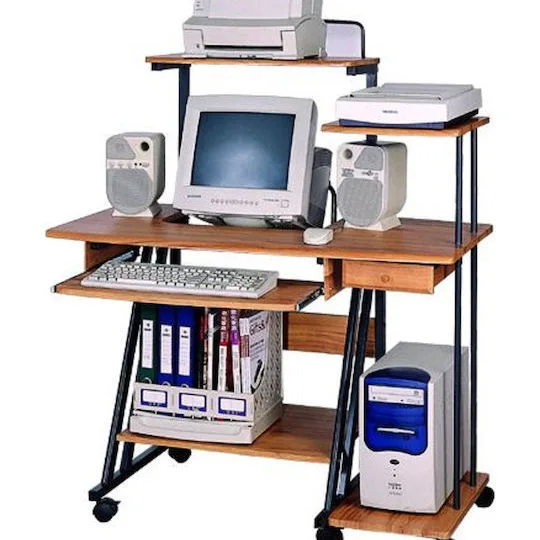 Γραφείο Υπολογιστή Ξύλινο Μπεζ με Μεταλλικά Πόδια 110x78x130εκ.
