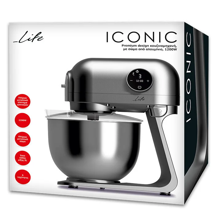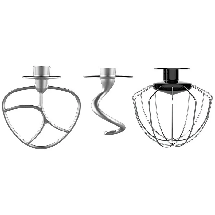 Είναι εξοπλισμένη με τρία εξαρτήματα για να επιλέγετε ανάλογα με τα υλικά και την συνταγή σας: γάντζο ανάμιξης από αλουμίνιο, γάντζο ζυμώματος και αυγοδάρτη από ανοξείδωτο ατσάλι. Με την πλανητική κίνηση των αναδευτήρων και με την σταθερή ταχύτητα ανάμιξης που προσφέρει, θα έχετε γρήγορα και τέλεια αποτελέσματα ακόμα και σε βαριές ζύμες!
