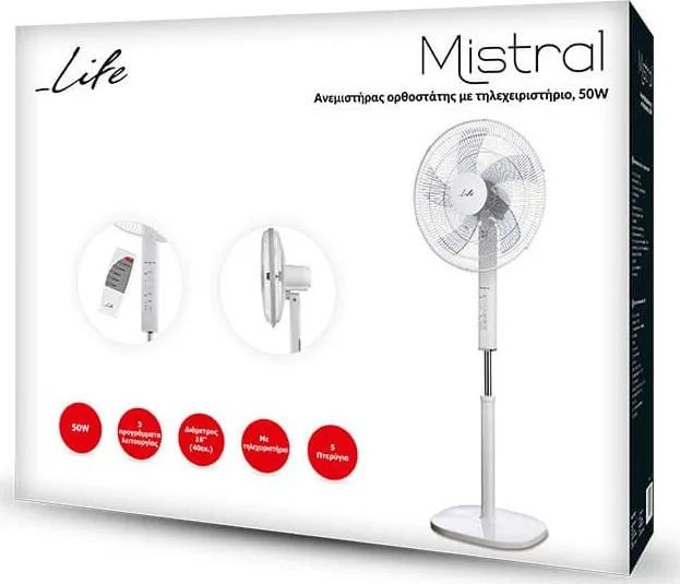 Life Mistral Ανεμιστήρας Ορθοστάτης 50W Διαμέτρου 40cm με Τηλεχειριστήριο