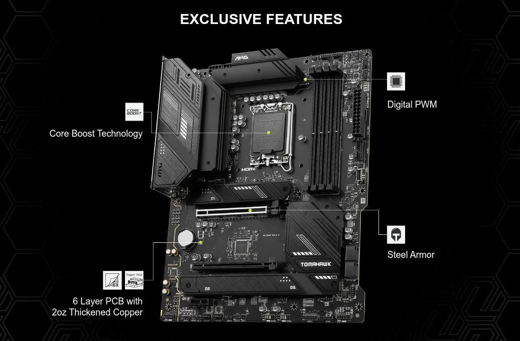 MSI MAG B760 TOMAHAWK WIFI Motherboard ATX με Intel 1700 Socket 7D96-003R