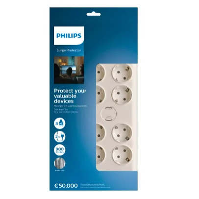Philips Πολύπριζο Ασφαλείας 8 Θέσεων με Καλώδιο 2m