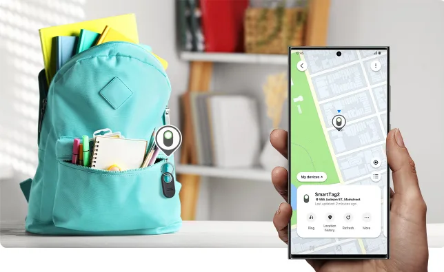 Χρησιμοποιείστε το Galaxy SmartTag2 για να μη χάνετε τα πράγματά σας! Με διάρκεια ζωής μπαταρίας έως και 500 ημέρες, πιστοποίηση IP67 για ανθεκτικότητα στη σκόνη και στο γλυκό νερό (έως 1m για έως 30'), αλλά και τις λειτουργίες Προβολή Πυξίδας και Αναζήτηση Κοντά, για διαισθητική αναζήτηση. Από την εφαρμογή Smart Things μπορείτε να εντοπίσετε στο χάρτη τη θέση του Galaxy SmartTag2 καθώς και την ιστορικότητα τοποθεσίας, έτσι ώστε να γνωρίζετε τη θέση των αντικειμένων στα οποία το έχετε τοποθετήσει ενώ σας βοηθά να ελέγχετε διάφορες συμβατές συσκευές ΙοΤ με ένα μόνο κλικ.