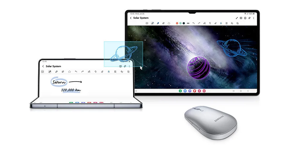 Το Multi Control σάς επιτρέπει να χρησιμοποιείτε πληκτρολόγιο και ποντίκι σε όλες τις συσκευές, όπως το Galaxy Z Fold5 και το Galaxy Tab S9, κάνοντας ακόμα πιο εύκολη την αντιγραφή και επικόλληση ή το drag and drop.