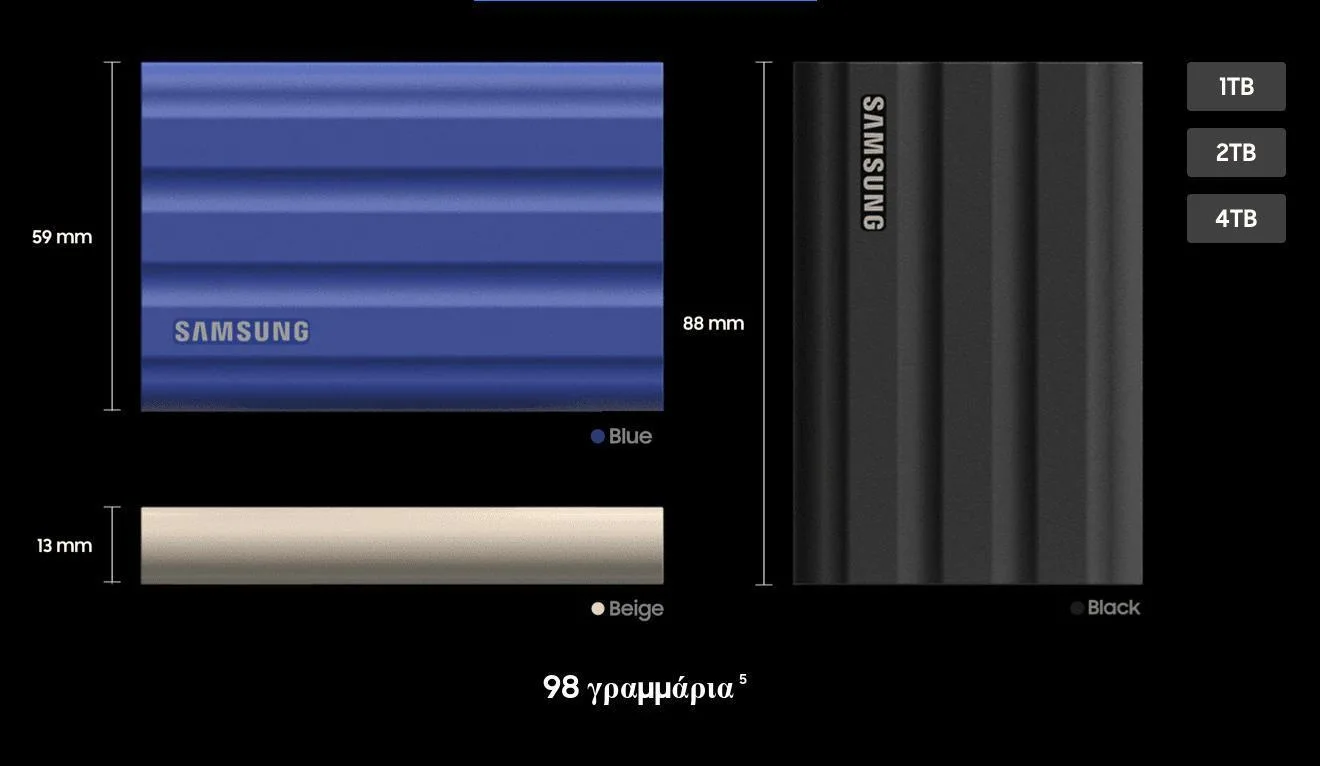 Samsung T7 Shield USB-C Εξωτερικός SSD 1TB 2.5" Μαύρο
