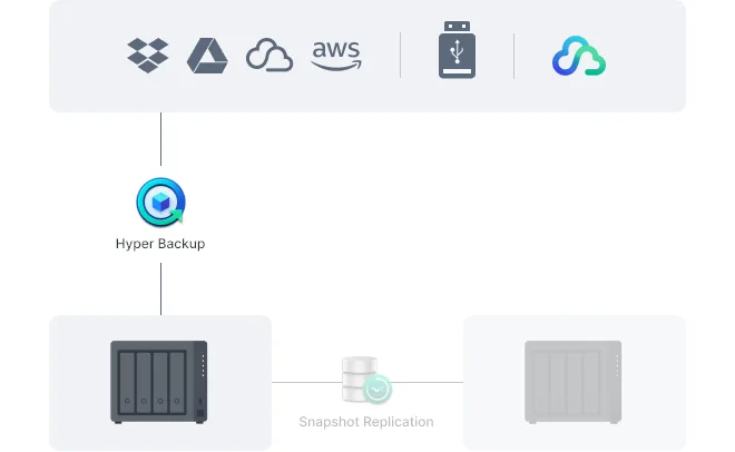 Μειώστε το αποτύπωμα αποθήκευσης στις εγκαταστάσεις σας και επωφεληθείτε από τις ταχύτητες του δικτύου του κέντρου δεδομένων με την τεχνολογία υβριδικού cloud. Η προαιρετική υπηρεσία Hybrid Share παρέχει αποτελεσματική αποθήκευση ψυχρών δεδομένων στο cloud, ενώ διατηρεί τα αρχεία με συχνή πρόσβαση σε προσωρινή μνήμη τοπικά στο DS423+ σας και είναι προσβάσιμα σε ταχύτητες LAN.