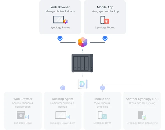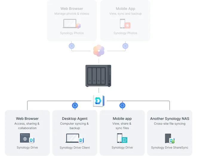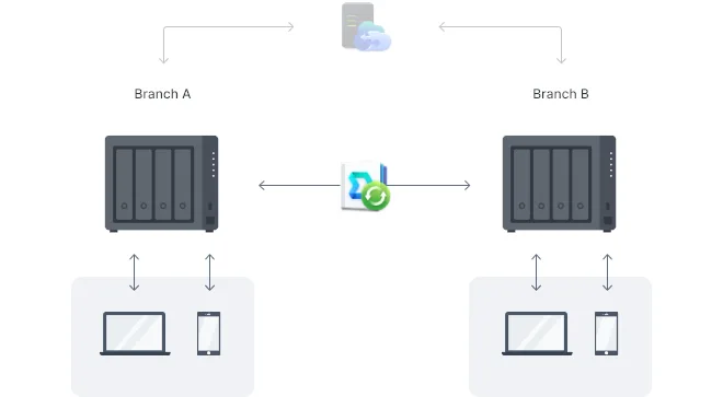 Συνεργάζεστε με ελάχιστο χρόνο διακοπής λειτουργίας χρησιμοποιώντας το συγχρονισμό αρχείων από τοποθεσία σε τοποθεσία, ο οποίος μπορεί να ρυθμιστεί ώστε να συγχρονίζει αυτόματα μεμονωμένα αρχεία ή φακέλους μεταξύ των συσκευών Synology, επιτρέποντας την απρόσκοπτη πρόσβαση σε αρχεία.