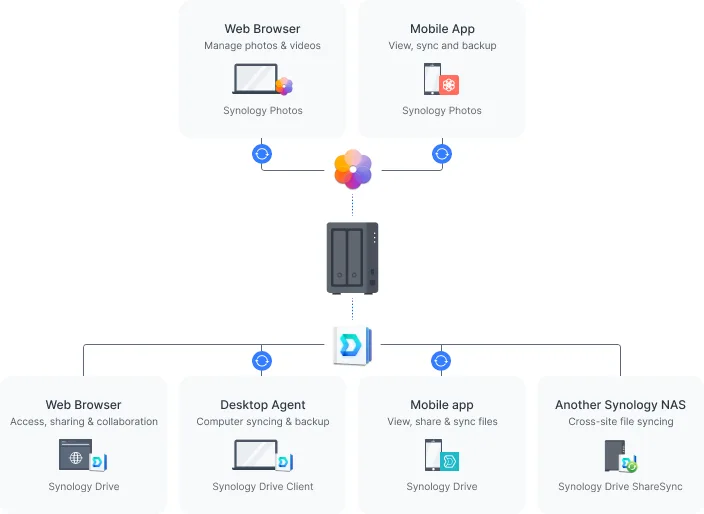 Αναπτύξτε χωρίς κόπο το δικό σας προσωπικό cloud με τη λύση private cloud της Synology. Απλοποιήστε την πρόσβαση σε αρχεία και ενοποιήστε τη διαχείριση των δεδομένων σας για να επωφεληθείτε από την ευκολότερη κοινή χρήση και συνεργασία αρχείων.