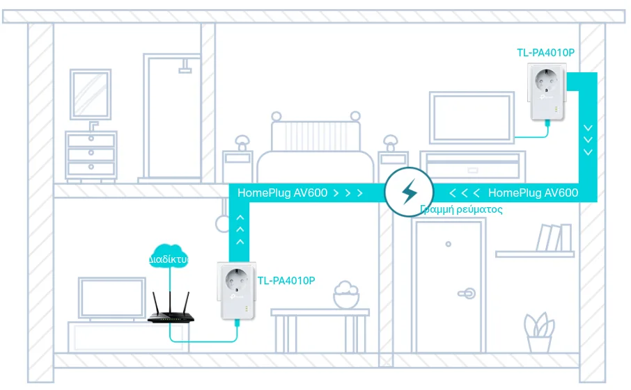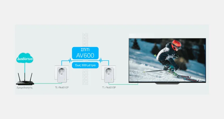 TP-LINK TL-PA4010PKIT v2.3 Powerline Διπλό για Ενσύρματη Σύνδεση με Passthrough Πρίζα και Θύρα Ethernet