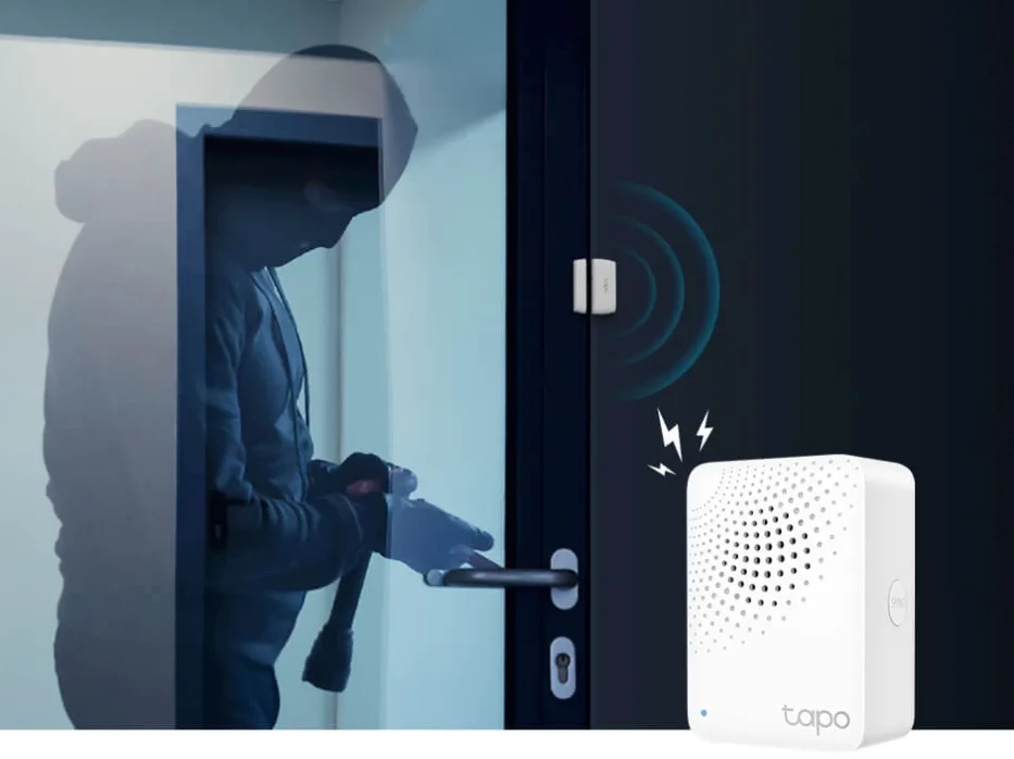 Σε συνεργασία με αισθητήρες κίνησης Tapo, αισθητήρες πόρτας/παραθύρου και άλλα, το Tapo Hub μπορεί να ηχήσει μια δυνατή σειρήνα (έως 90 dB) για να προειδοποιήσει για κίνδυνο ή να αποτρέψει τους εισβολείς.