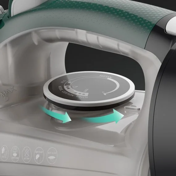 Ακριβής ρύθμιση θερμοκρασίας ανάλογα με τον τύπο υφάσματος, προστατεύοντας τα ευαίσθητα υλικά και διασφαλίζοντας ασφαλές σιδέρωμα.