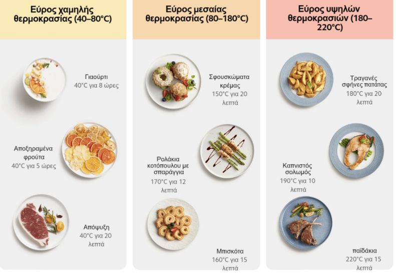✓ Από τραγανές πατάτες μέχρι ζουμερές μπριζόλες, όλα βγαίνουν τέλεια ψημένα, ενώ η οθόνη αφής και οι ρυθμίσεις θερμοκρασίας κάνουν το μαγείρεμα παιχνίδι. Γιατί η νοστιμιά... θέλει τρόπο, όχι κόπο!