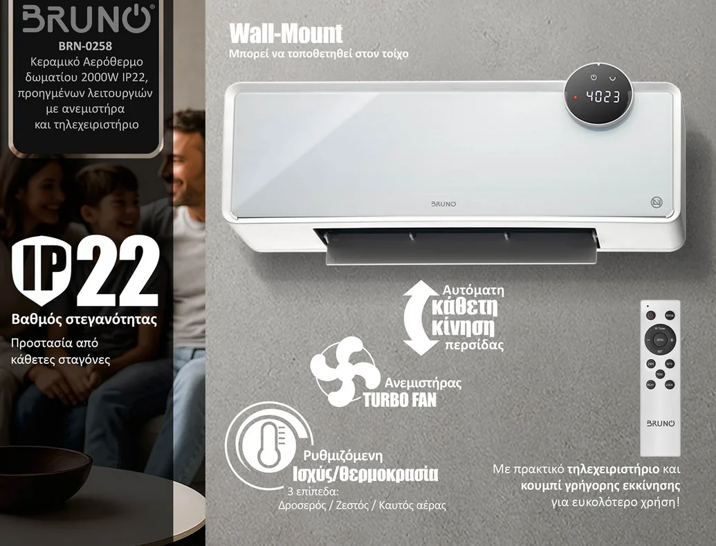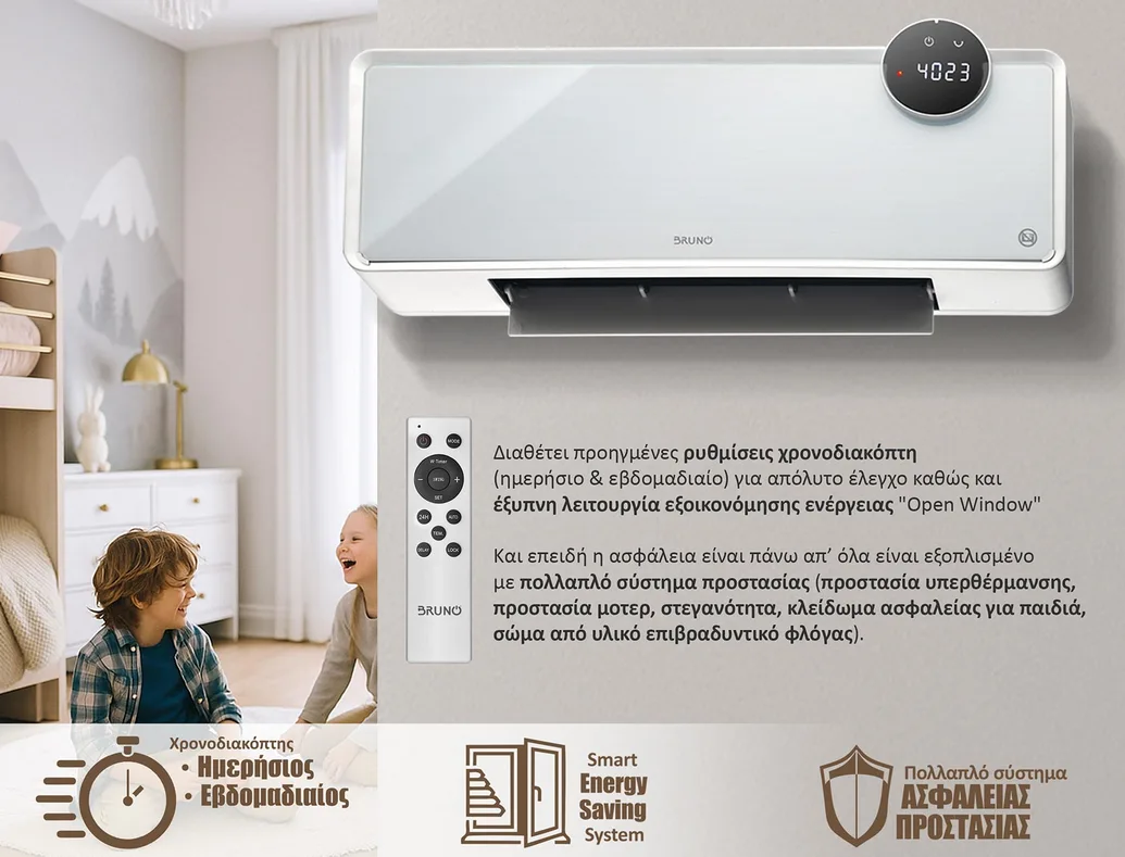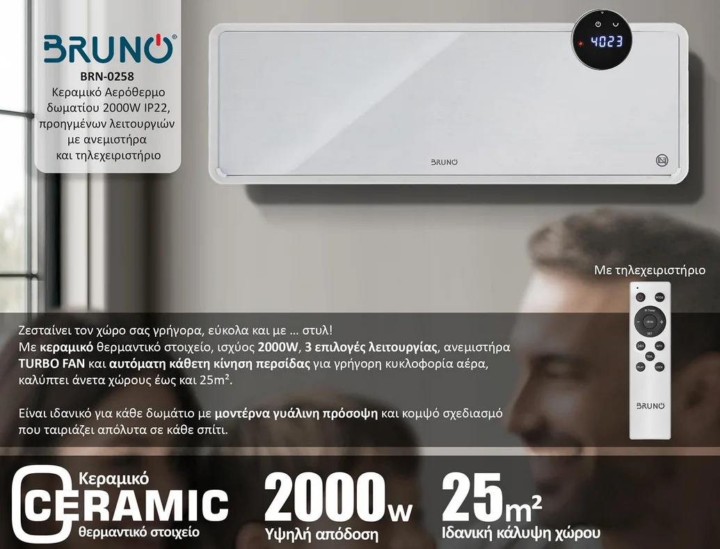 Bruno Κεραμικό Αερόθερμο Δωματίου Δαπέδου και Τοίχου Λευκό 2000W