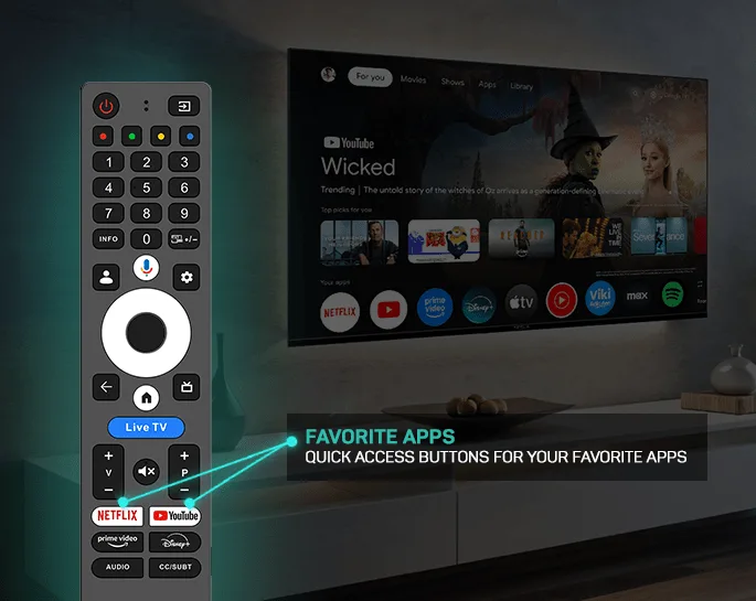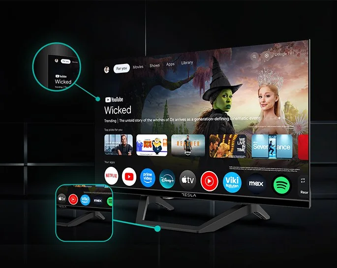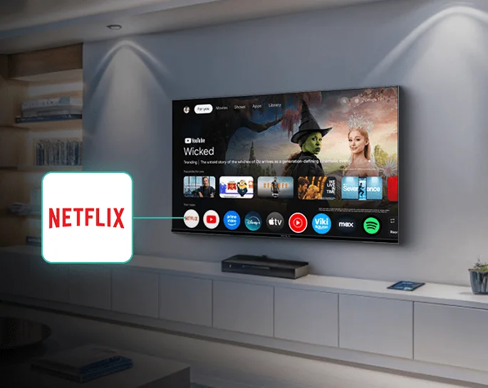 όπως Netflix, Disney+, Prime Video, YouTube, Apple TV και HBO Max, καθώς και φωνητικό έλεγχο μέσω Google Assistant με το πάτημα ενός κουμπιού ή με μία μόνο φωνητική εντολή.