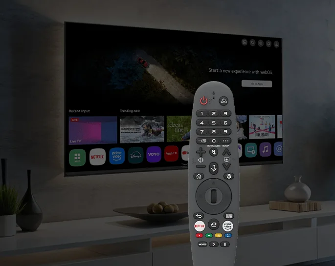 να αποκτάτε πληροφορίες, να ακούτε μουσική ή να βρίσκετε ταινίες και σειρές, απλώς μιλώντας στο μικρόφωνο του Magic Remote ή χρησιμοποιώντας την εφαρμογή ThinQ AI στο κινητό σας.